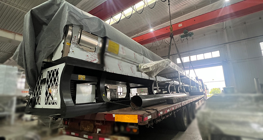 • R60原味炒機(jī)跟配套線設(shè)備吊車輔助裝車發(fā)貨